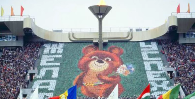 The bear is a beloved and widely recognized animal in Russia, often seen as a national symbol and featured in countless Russian fairy tales. For this reason, the Soviet Union designed Misha the Bear as the official mascot of the Games — a brown bear wearing a belt decorated with the Olympic rings.