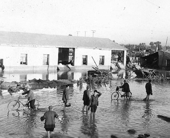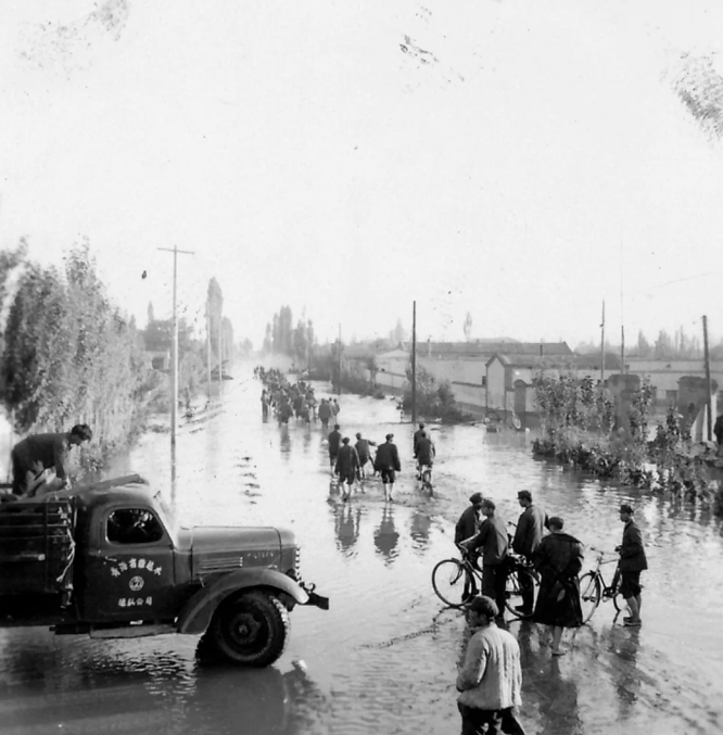 As the flood raged, it swept everything in its path, leaving behind destruction and chaos. At the heart of the county, where the large roundabout is now located, several old wooden cabinets were helplessly swept away by the floodwaters, floating like silent witnesses to this human tragedy. As the floodwaters rushed down Yangguan West Road, the once-bustling shops, grain depots storing food reserves, and tightly packed residential buildings were reduced to rubble under the overwhelming impact of the flood. Streets that once thrived with life were instantly transformed into a waterlogged wasteland. Many residents, suddenly awoken from their sleep, scrambled to escape the approaching flood. Those unable to flee in time saw their possessions swept away by the floodwaters.