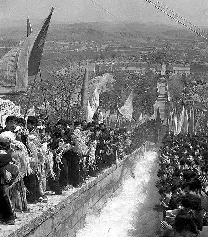 In April 1965, the first phase of the Red Flag Canal was completed when water from the Zhang River finally flowed over the mountains, bringing “sweet water” to Lin County. The local people were moved to tears as they saw the water flow for the first time. Children ran through the waves, celebrating this long-awaited miracle. By 1969, the canal system was fully completed, providing water to 540,000 acres of farmland.