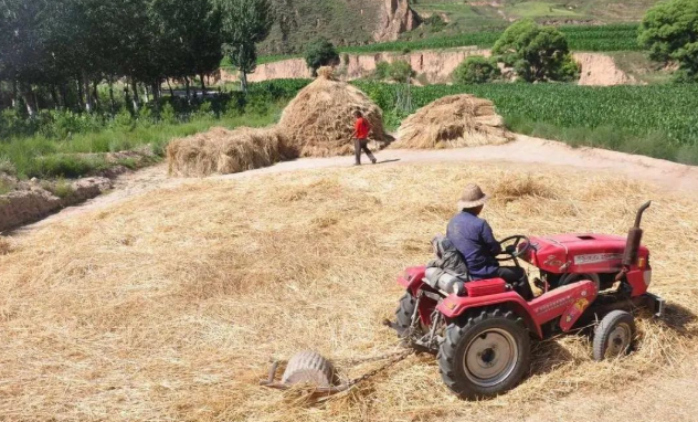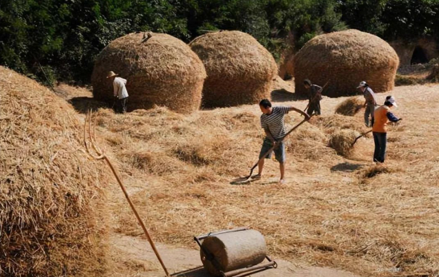 The wheat-harvest season is here again, and memories of the threshing ground return to my mind. When I was four or five, my memory was hazy—I remember that back then tractors were still rare. After harvesting the wheat in the fields near the lake, binding the sheaves, they were carted back and spread out to dry on the threshing floor. Once sufficiently dry, it was the turn of the little donkey. The little donkey would drag a stone roller around and around the yard, countless laps, until the grain was pressed down. Next door, a woman’s green mule was even stronger than our little donkey.
