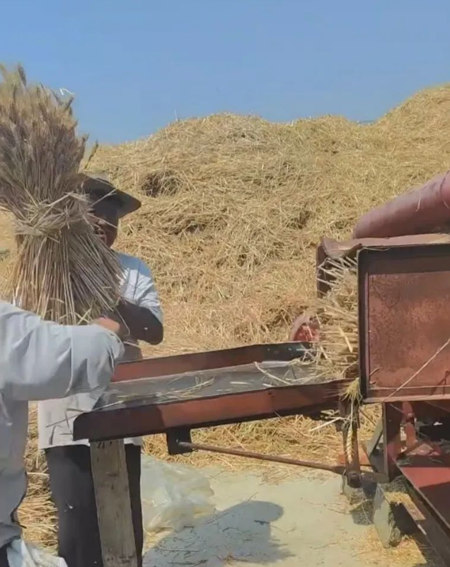 Then came the threshing machine—no more rolling fields. You harvested and fed directly into the machine; it separated the grain from stalk and head. But the real relief came in the era of large-scale combine harvesters. When I entered high school, these machines became more common. Most were from outside villages and required queuing.